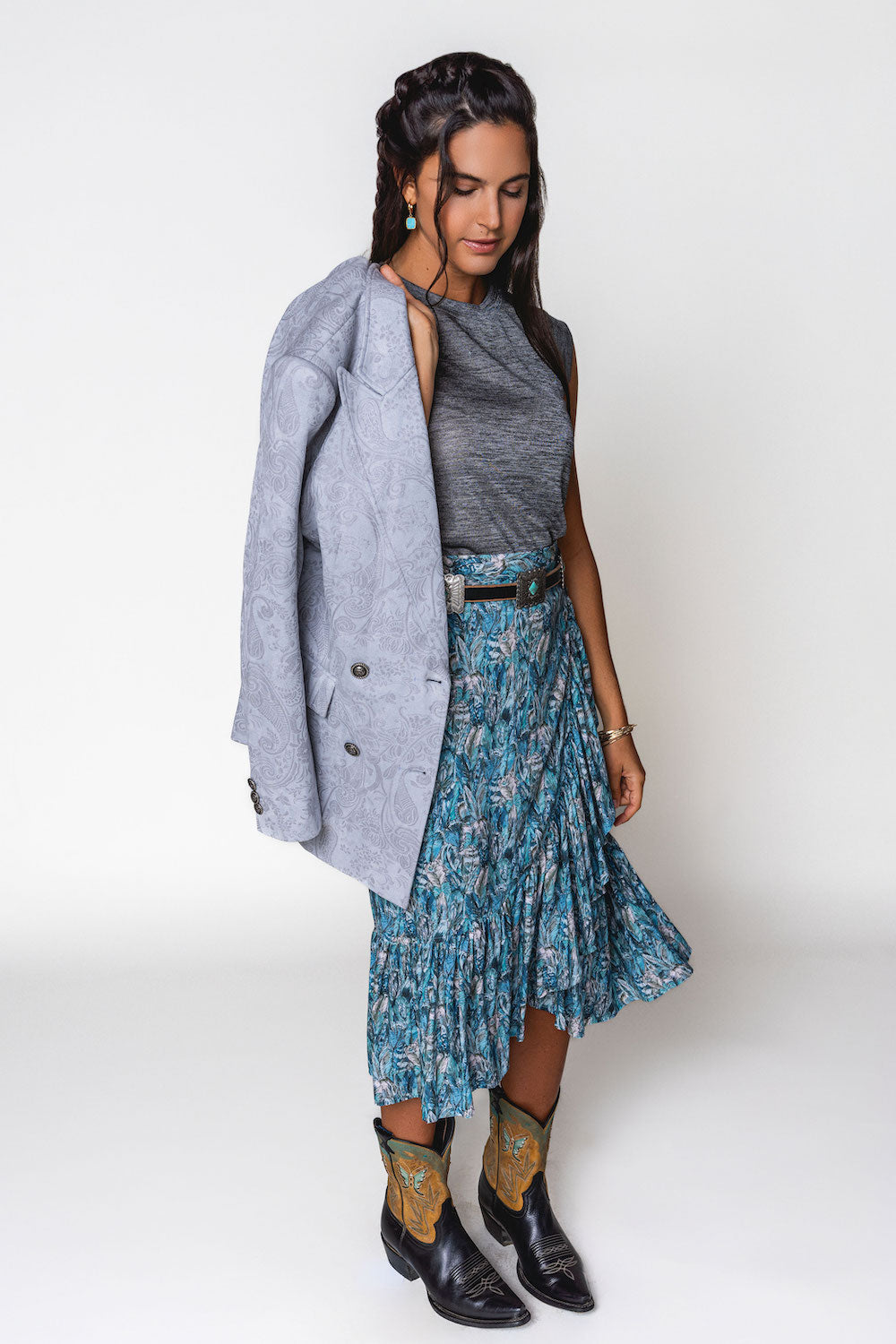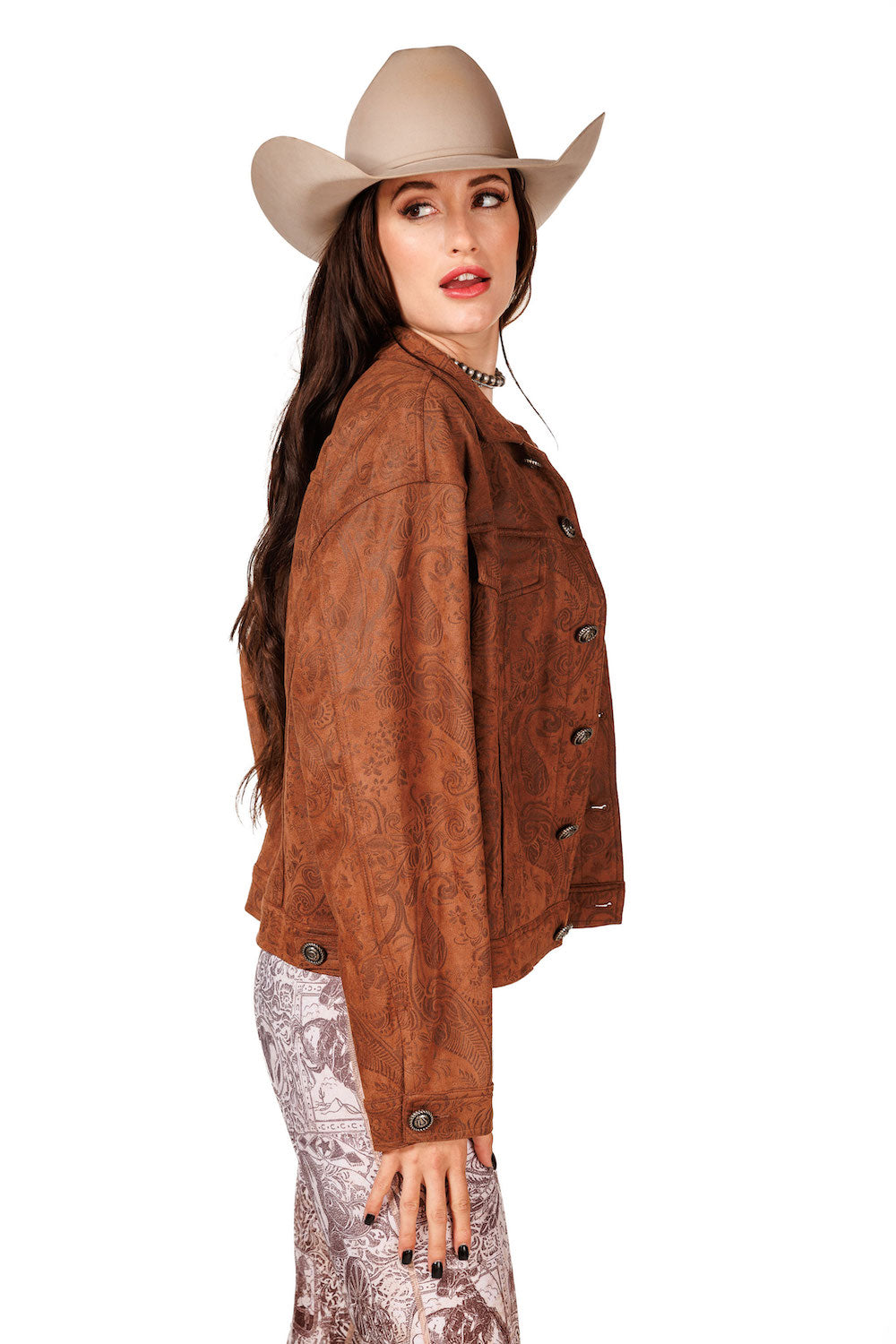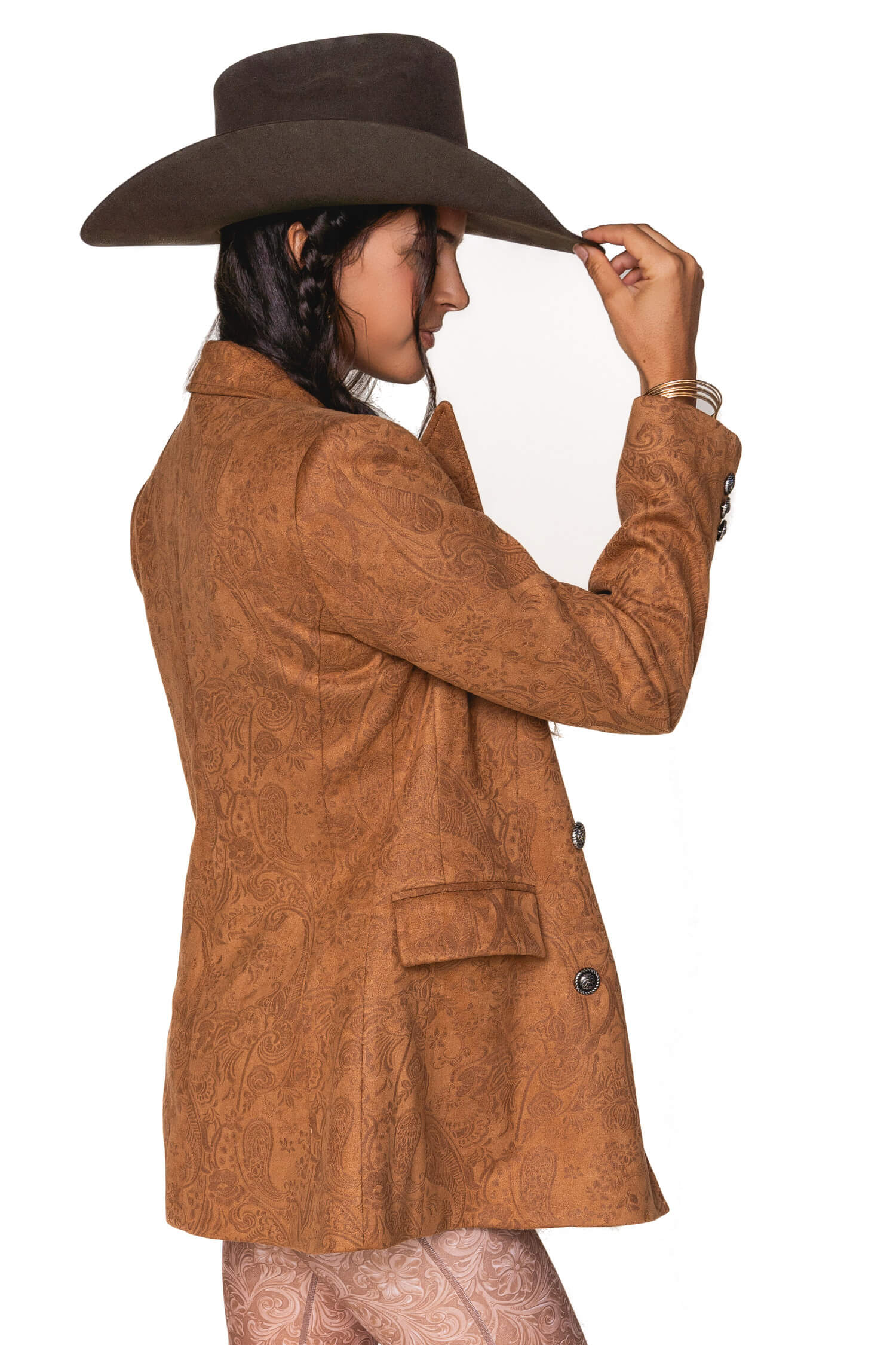 The Kirbe Trailblazer is one of those rare pieces that just stops you in your tracks. The embossed vegan suede and structured fit give it that elevated western flair I can’t get enough of. It’s versatile enough for long days on the road or a night out, and the quality is unmatched. This is a forever piece — one that’ll stay in my closet for years and eventually be passed down. True western elegance, redefined.