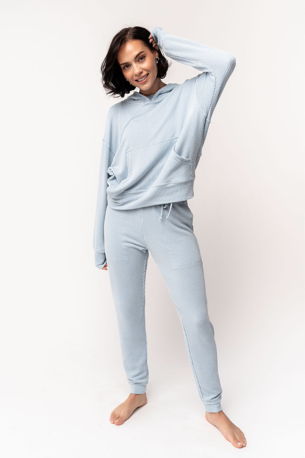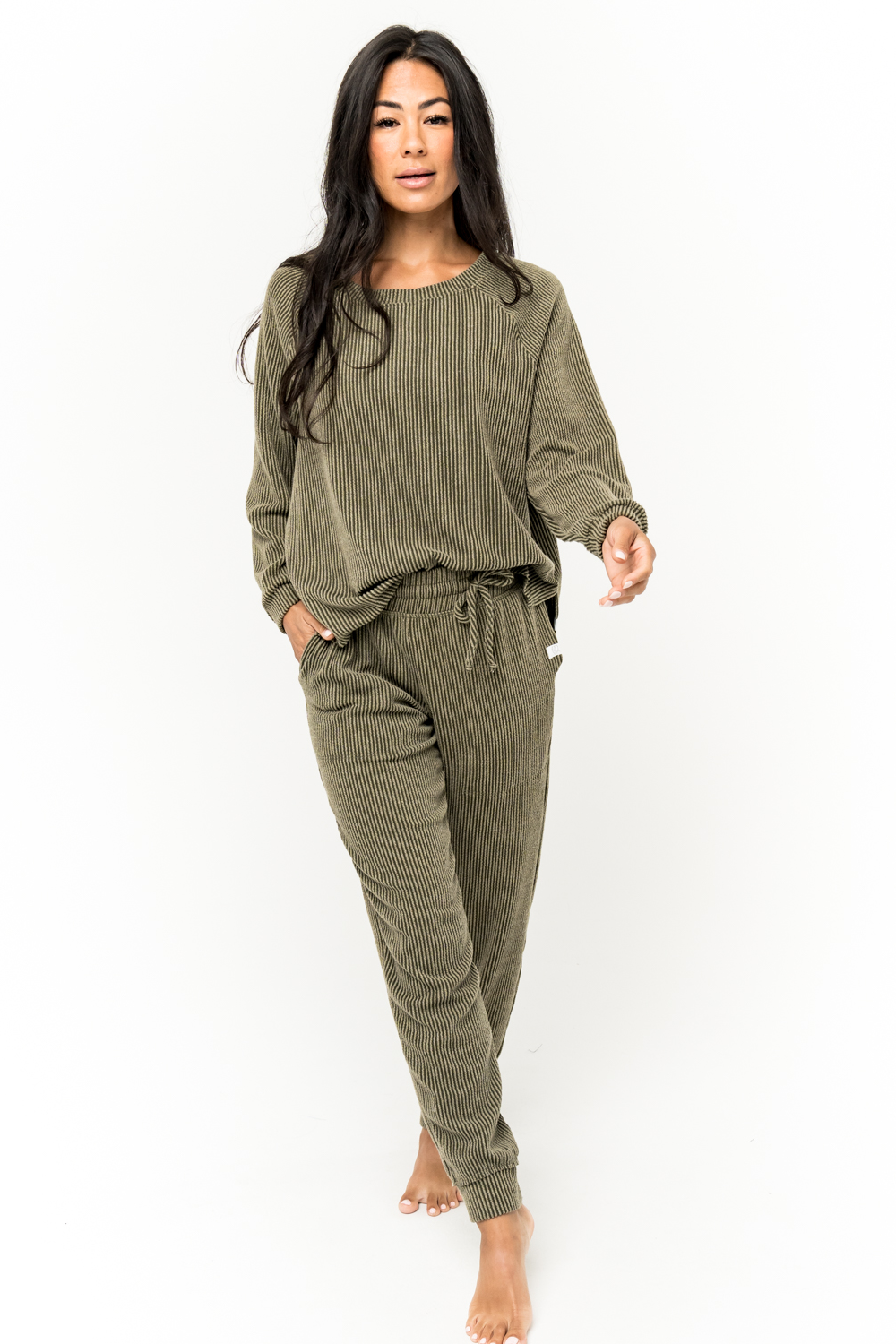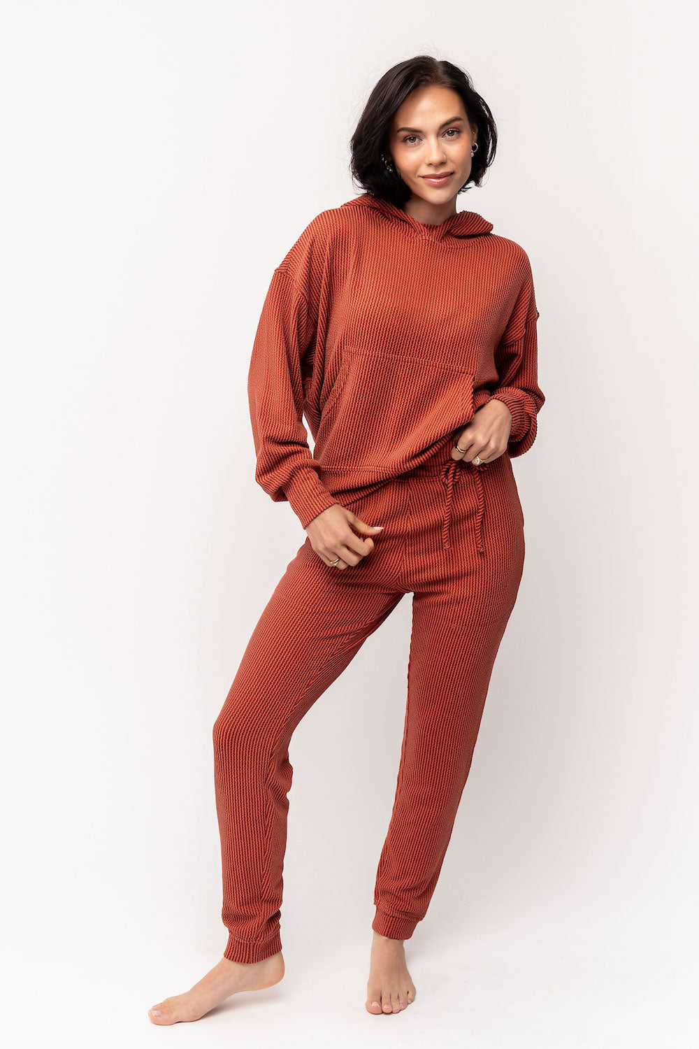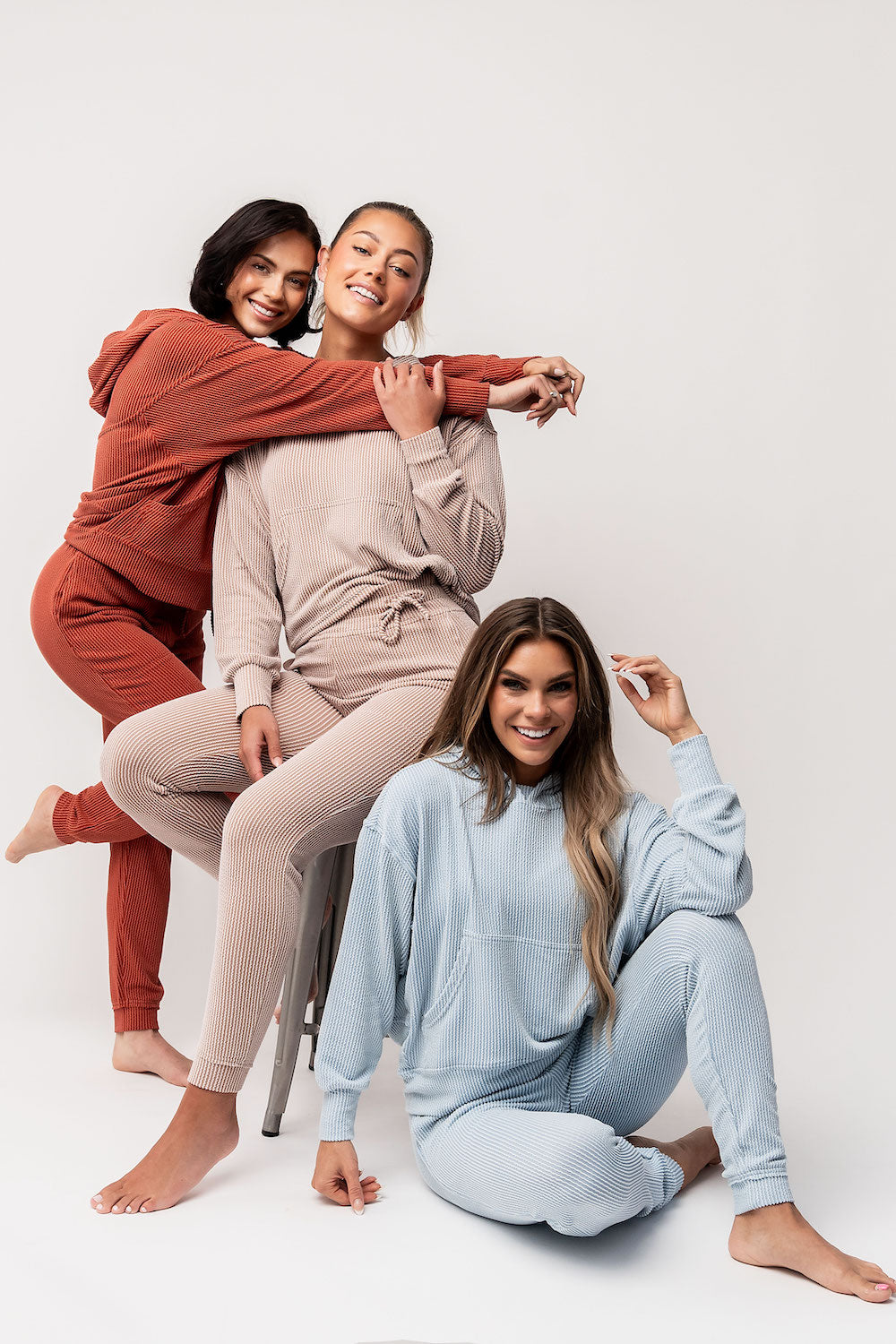 Our Urban Love loungewear collection is the epitome of comfort and style. The ribbed texture combines with an oh-so-soft blend of rayon, polyester, and spandex, which pretty much makes it the next best thing to wearing a hug. These trendy silhouettes effortlessly complement your on-the-go lifestyle or quiet moments of relaxation at home..