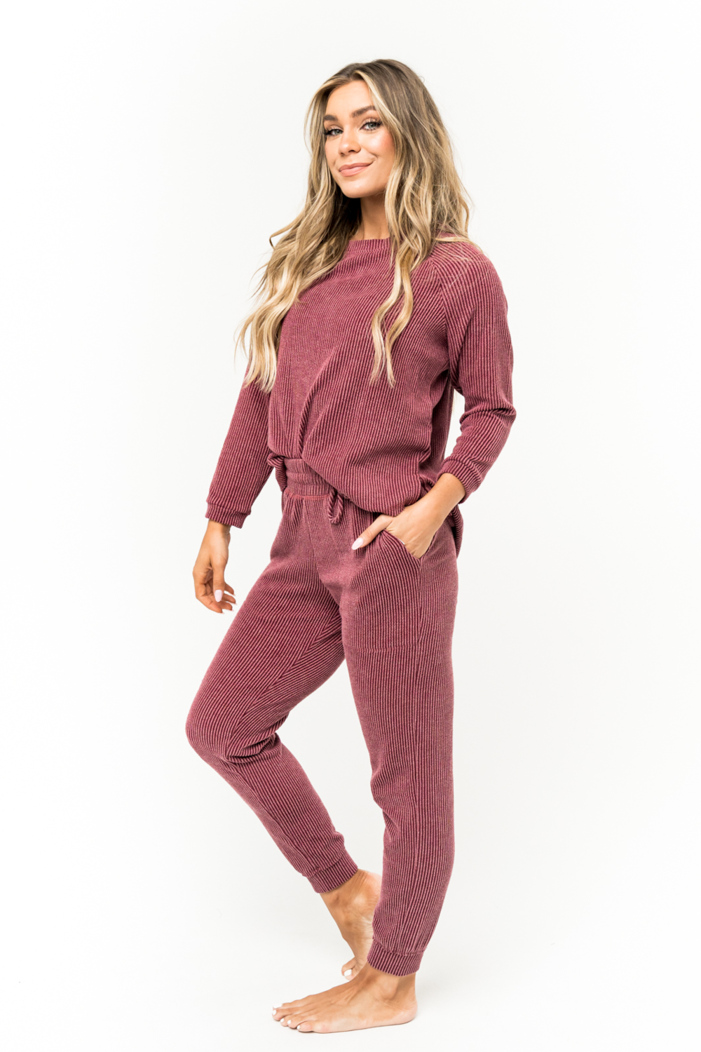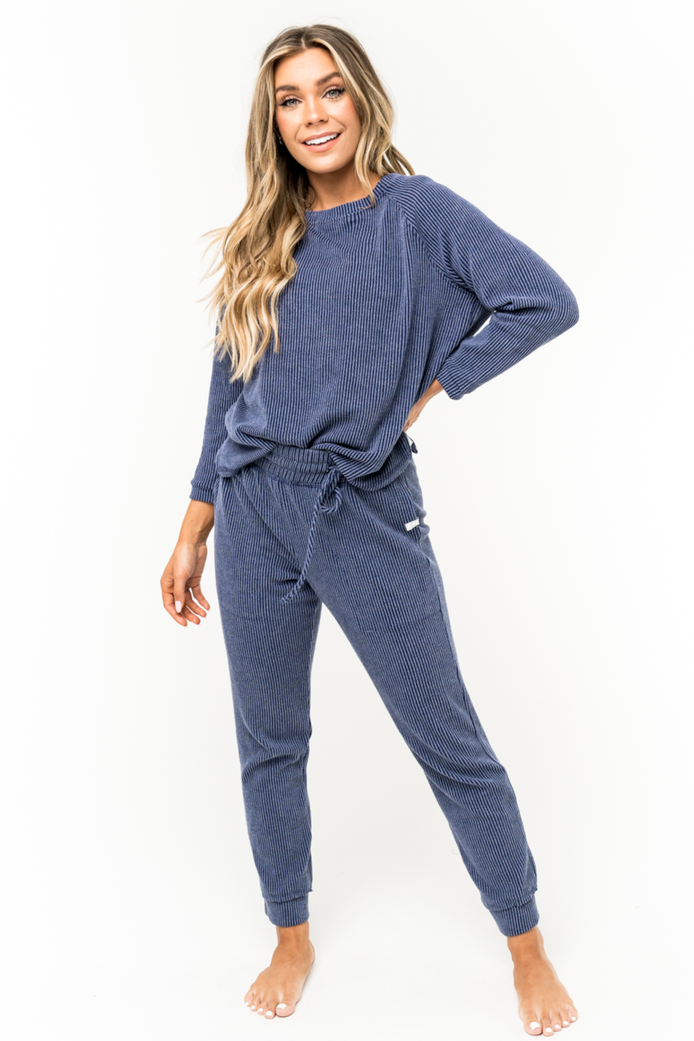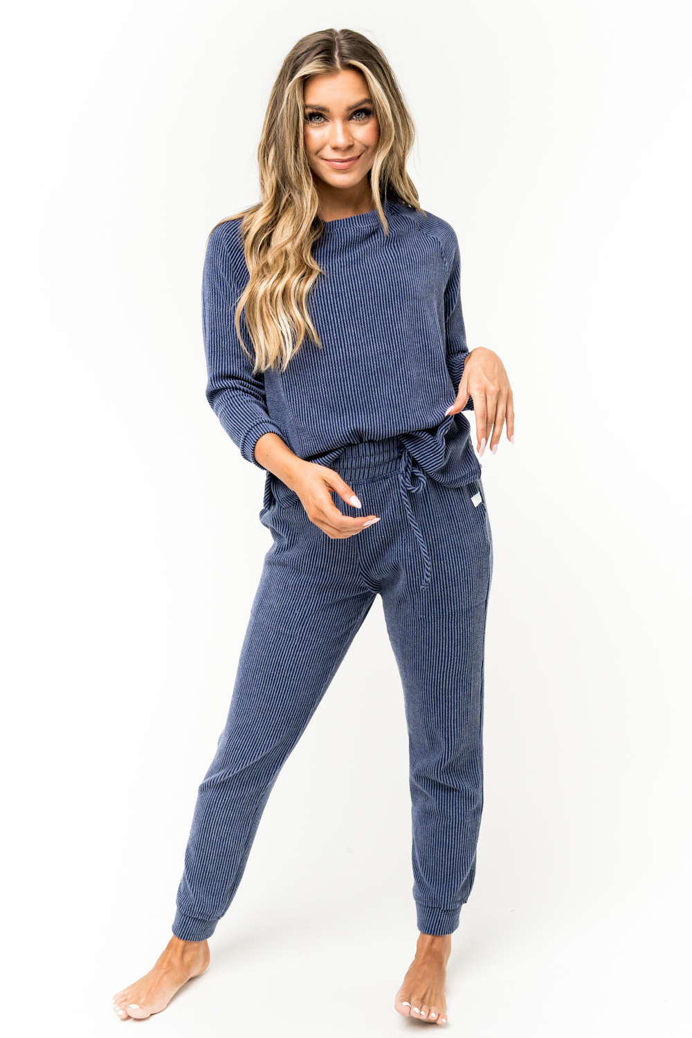 Our Urban Love loungewear collection is the epitome of comfort and style. The ribbed texture combines with an oh-so-soft blend of rayon, polyester, and spandex, which pretty much makes it the next best thing to wearing a hug. These trendy silhouettes effortlessly complement your on-the-go lifestyle or quiet moments of relaxation at home..