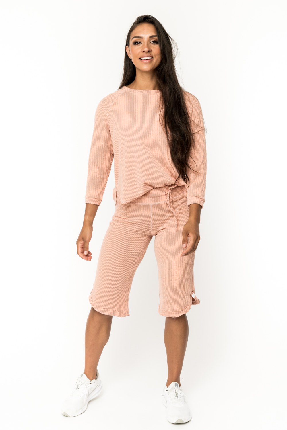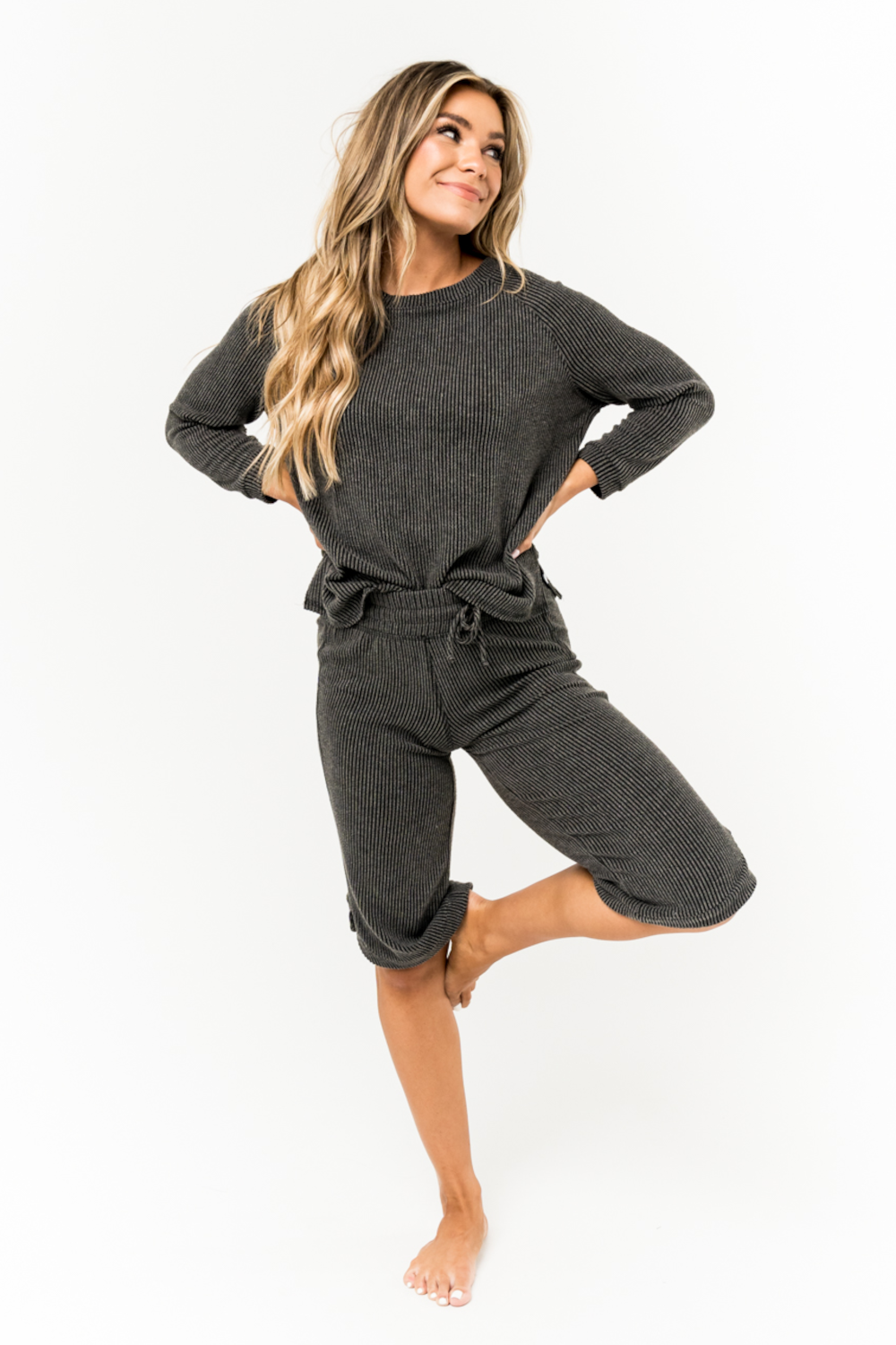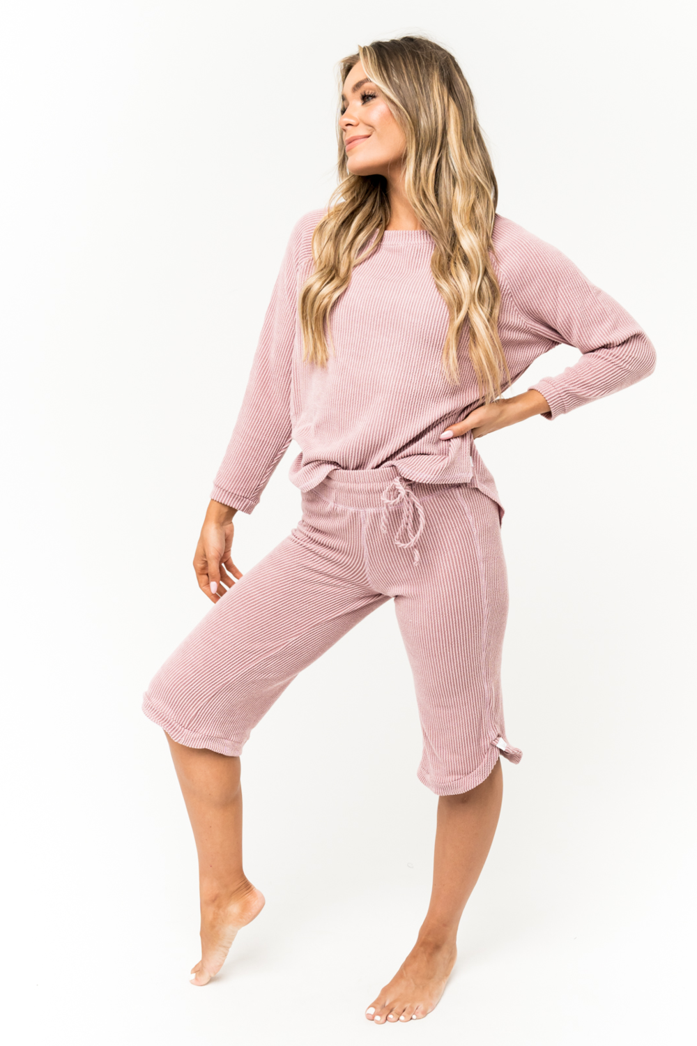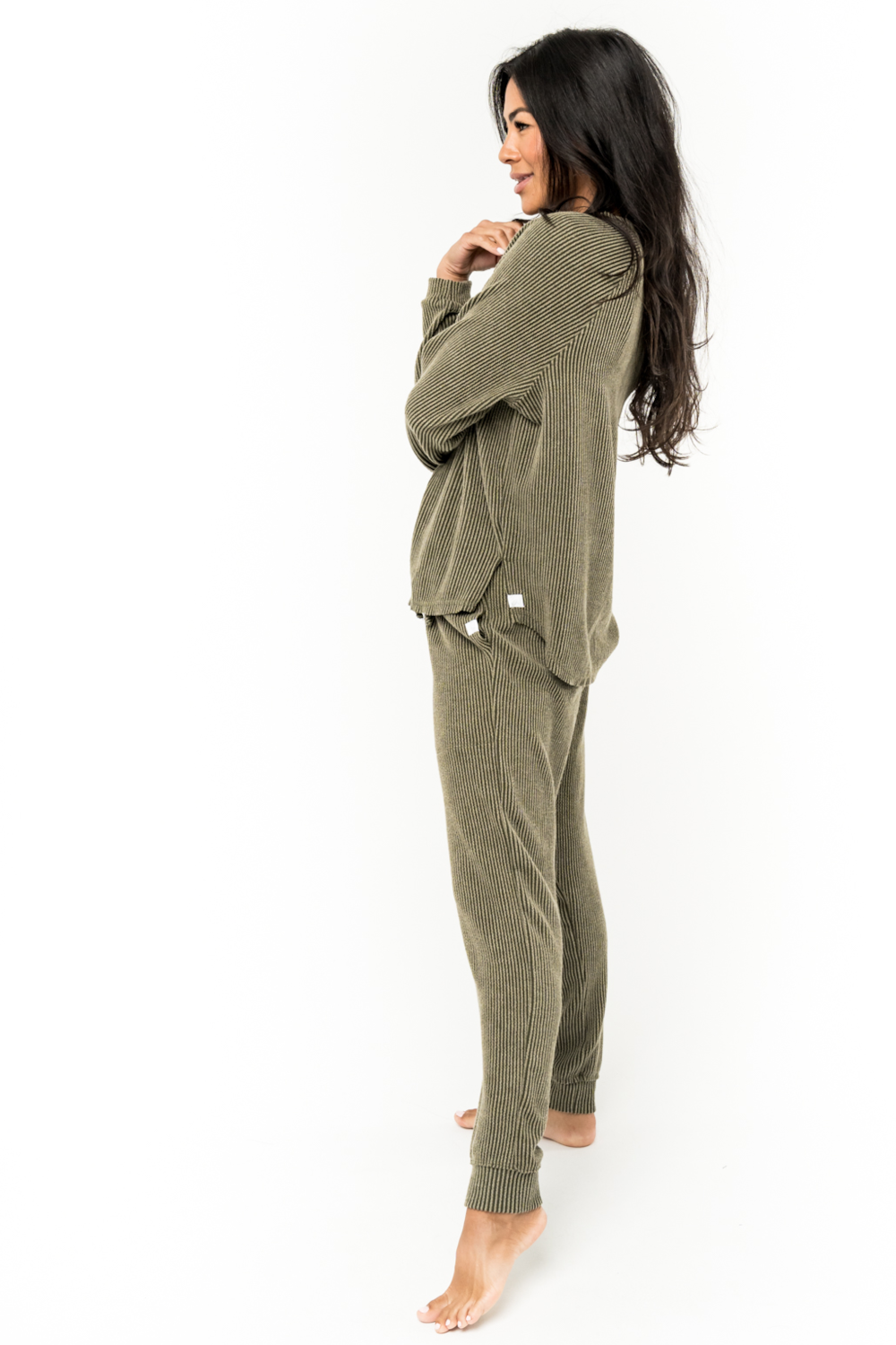Our Urban Love loungewear collection is the epitome of comfort and style. The ribbed texture combines with an oh-so-soft blend of rayon, polyester, and spandex, which pretty much makes it the next best thing to wearing a hug. These trendy silhouettes effortlessly complement your on-the-go lifestyle or quiet moments of relaxation at home..