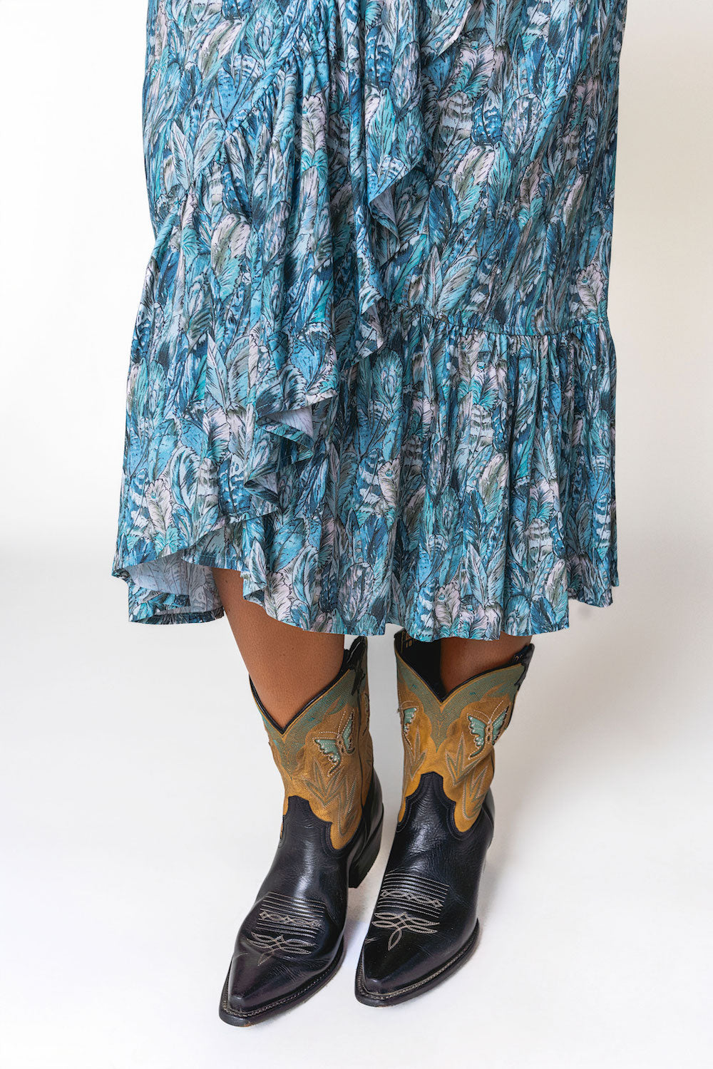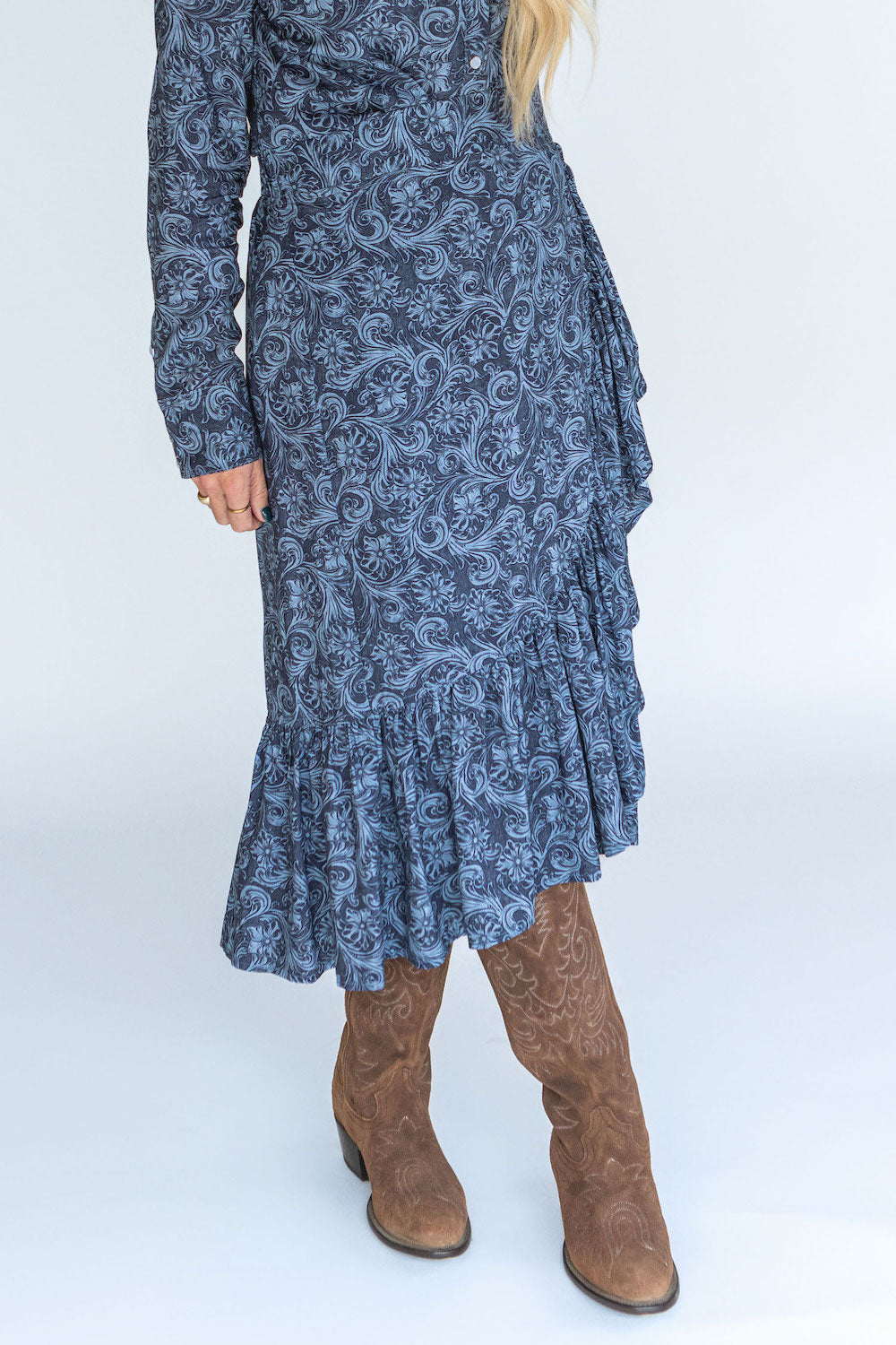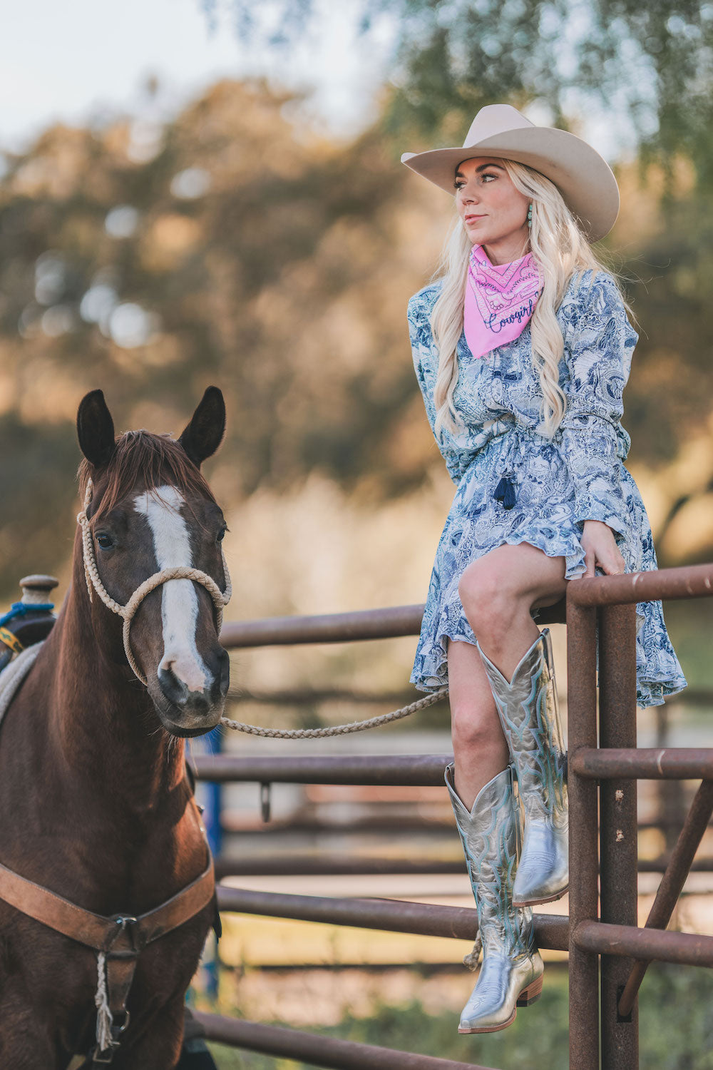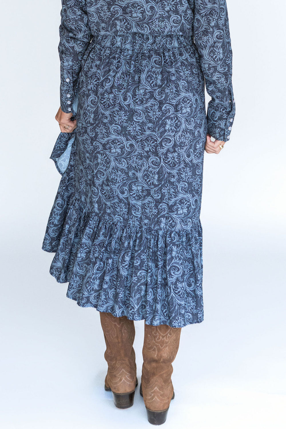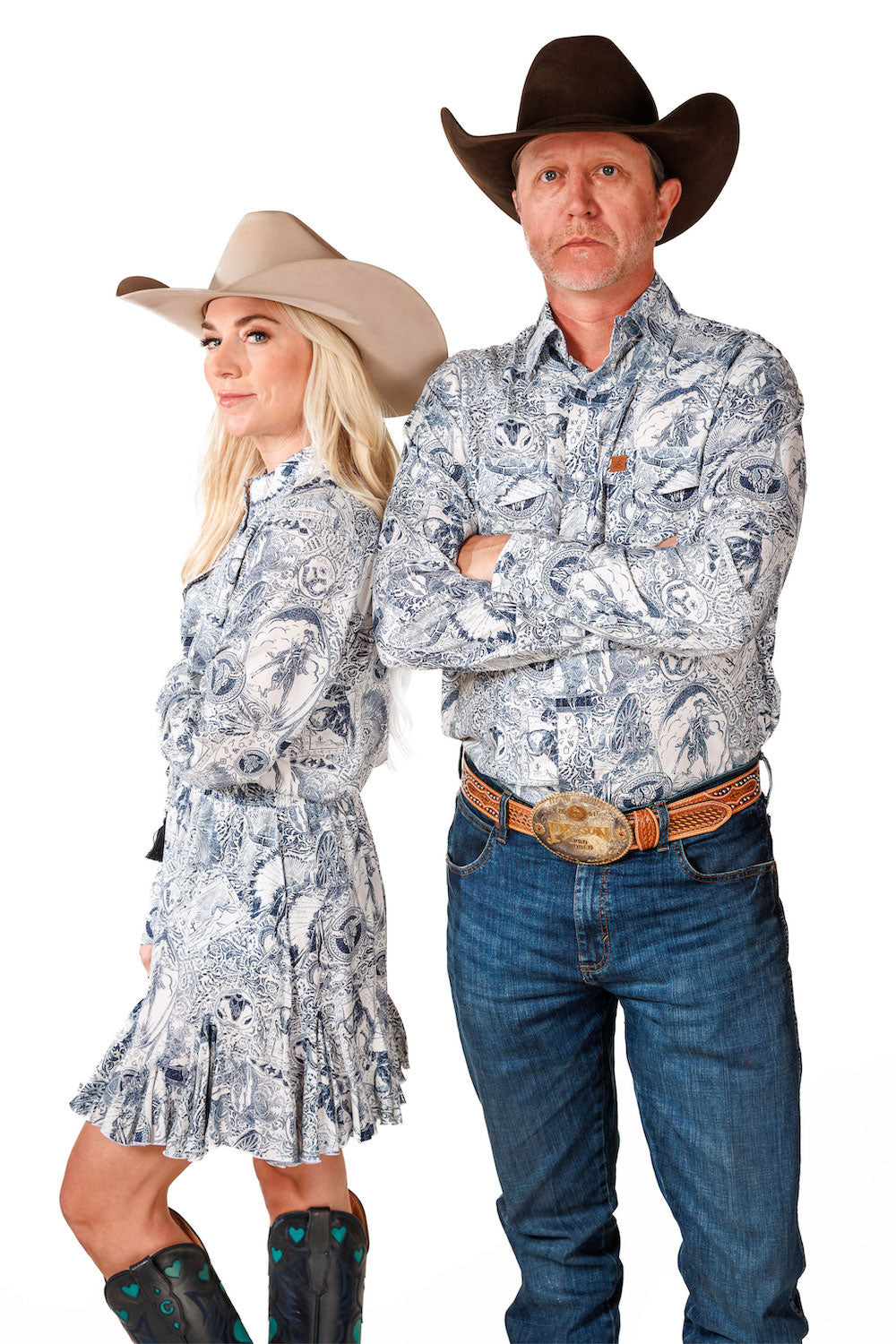 I absolutely adore the Lovlei Ranch pearl snap and skirt combo in the Desert pattern! Together it looks like a gorgeous dress, but you can easily mix and match the pieces for endless outfit options. The fabric is dreamy—so soft and luxurious—and the way it moves is pure elegance. I received so many compliments wearing this set! You can dress it up with boots and jewelry or keep it casual for everyday wear. Truly one of my favorite sets!