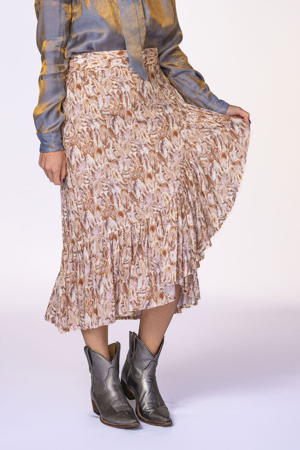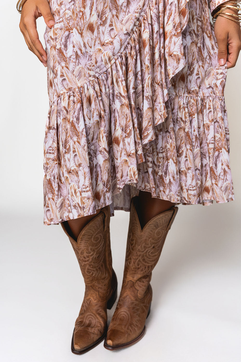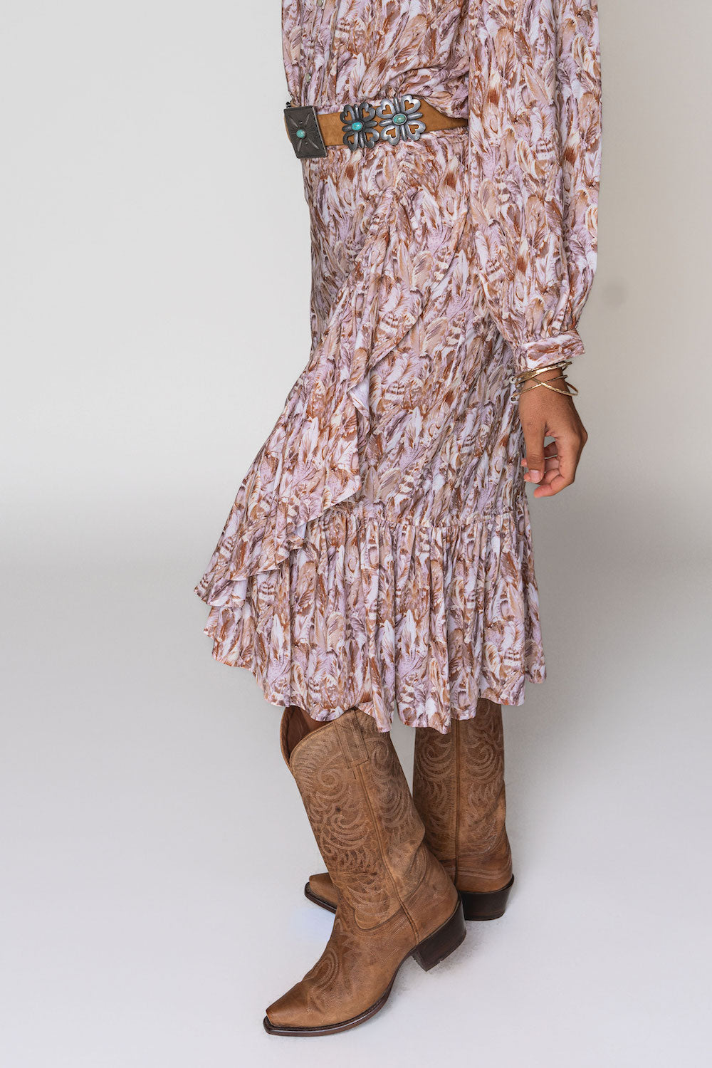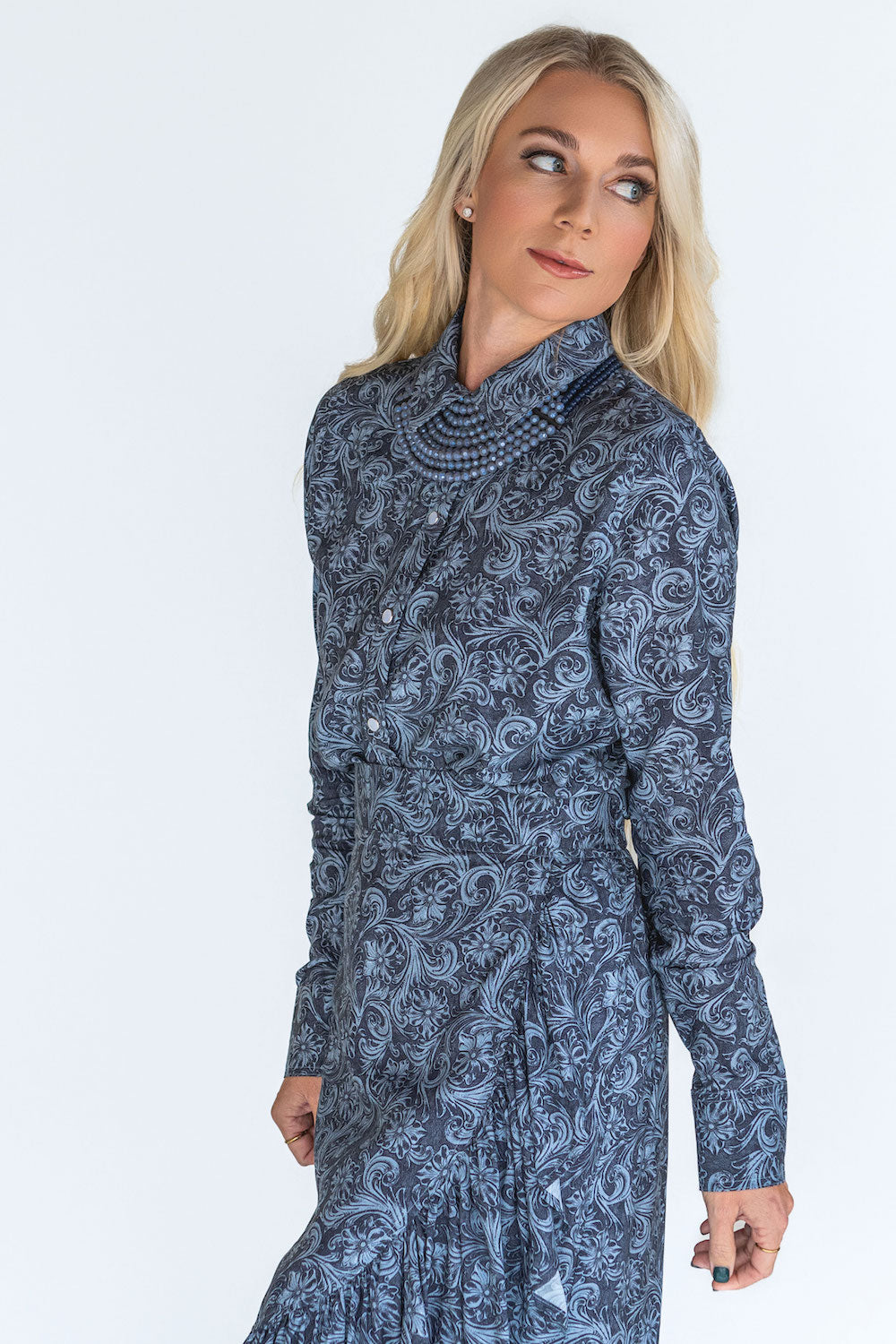 I absolutely adore the Lovlei Ranch pearl snap and skirt combo in the Desert pattern! Together it looks like a gorgeous dress, but you can easily mix and match the pieces for endless outfit options. The fabric is dreamy—so soft and luxurious—and the way it moves is pure elegance. I received so many compliments wearing this set! You can dress it up with boots and jewelry or keep it casual for everyday wear. Truly one of my favorite sets!