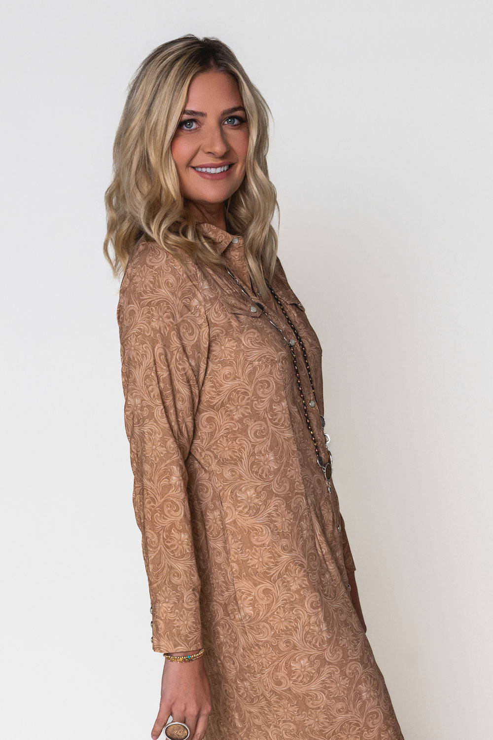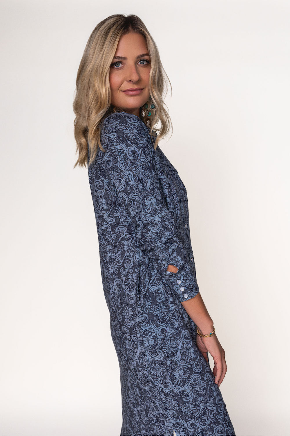 The Lovlei Wynonna Dress is a must-have for any wardrobe. Its flattering fit, soft, breathable fabric, and elegant design make it perfect for any occasion. I absolutely love this dress! The pearl snaps, pockets, and side slits give it such a flattering Western vibe. It fits beautifully and feels so comfortable—definitely a new favorite in my wardrobe.