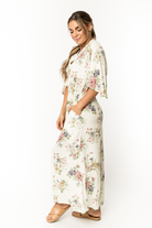 This 100% rayon gorgeous long dress is a masterpiece. A must for going to a party or dress down casual with sandals. Beautiful bell sleeves, Pockets and the perfect length with slits on each side. SKU# 22D356