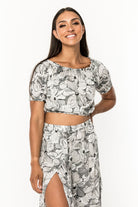 The oh-so adorable off-the-shoulder "Tara" Crop Top is made from 100% Rayon, and features a flexible and gentle elastic, that can be worn to shape the neck-line, or provide a more fun "off the shoulder" look. The sweet short sleeves and overall design is a figure-flattering unique piece that is the perfect length and shape for all body types. SKU# 22T202