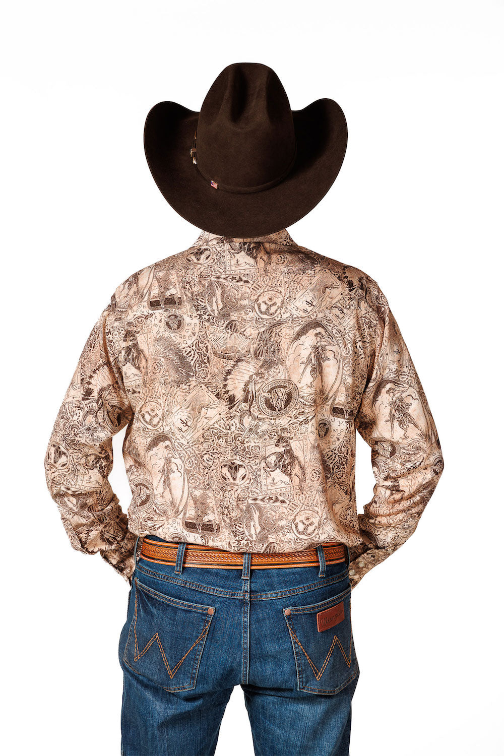 Ladies can’t have ALL the fun. This shirt is 100% rayon poplin making it breathable and oh-so-soft. A perfect combination of slim and roomy, you can wear on the horse or on the town. The antique colorways, yoke detailing and pearl snap buttons deliver a quintessential western style that is unparalleled in quality. The left pocket has a space to hold your pen for convenience. If you want to match your lady, we’ve got her covered, too. SKU# 23MS1002