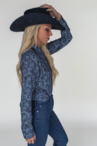 A reimagined balance of traditional western charm and contemporary chic, sure to become a staple in any coastal cowgirl’s closet. Both function and fashion-forward, this 100% Rayon poplin darling has pearl snap buttons and a traditional front and back yoke for the perfect feminine fit. SKU# 23WS1801.
