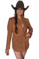 "I love nothing more than a classic blazer with unique finishing touches. The embossed vegan suede and button details add a feminine, flirty flair, while the tailored fit ensures a one-of-a-kind look. This versatile staple is a must-have for every wardrobe!"