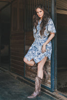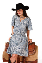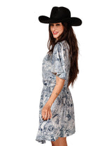 This effortless short dress features playful bell sleeves and a row of chic pearl snap buttons down the front. The smocked waist adds a flattering fit, making it both versatile and stylish for any occasion. 100% Rayon poplin for a beautiful feel and drape with every move.
