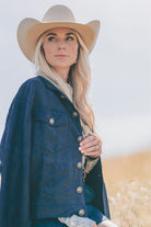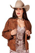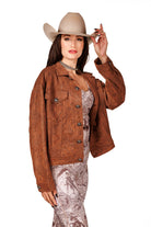 Hitting the town or the ranch the Abilene will give you a pep in your step. This jacket is so comfy a bit oversized for that fun sporty but fashion look. Soft and cozy ultra suede embossed with beautiful paisley print and classy horseshoe silver concho buttons!